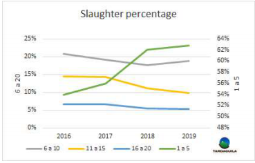 另一輪育肥牛供應(yīng)短缺開始,屠宰量似乎在向大型公司集中,過去三年里,最大的五家公司屠宰量占比越來越重,2016年前五家公司屠宰量占總量53.9%,由于屠宰行業(yè)利潤率進(jìn)一步緊縮,2017-2019年上半年占比一直在增長,目前已經(jīng)達(dá)到62.8%。而6-10位的屠宰公司屠宰占比減少了兩個(gè)點(diǎn)到18.8%,11-15位的屠宰公司從2016年占比14.5%降到目前的9.9%,其中有一家屠宰廠由于沒有中國證而停產(chǎn),中國市場是目前出價(jià)最高而且最為重要的市場。