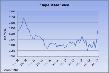 出口閹牛的價(jià)格,包括英國種和印度串種都沒有變化,最好的英國種閹牛價(jià)格保持在116-123比索/公斤,印度串種閹牛112-117比索,母牛也沒有變化,特種和良種母牛98-105,工業(yè)母牛85-88比索。