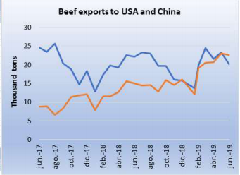 2019/20農(nóng)業(yè)年前兩周阿根廷工廠已經(jīng)發(fā)運(yùn)了1847噸希爾頓牛肉,比巴拉圭全年發(fā)運(yùn)的量還多一倍,也達(dá)到了烏拉圭配額量的30%,不過還需要觀察在國際價(jià)格下跌、對(duì)美元匯率貶值以及本地消費(fèi)減少的情況下市場會(huì)如何發(fā)展。