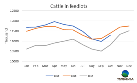 10月美國(guó)農(nóng)業(yè)局牛只存欄報(bào)告沒(méi)有巨大變化,10月1日飼育場(chǎng)存欄1130萬(wàn)頭,比一年前下降1.1%,這是年度對(duì)比中第二個(gè)存欄總數(shù)連續(xù)減少月。9月補(bǔ)欄總計(jì)209萬(wàn)頭,比2018年高2%,9月賣到市場(chǎng)的牛只共174萬(wàn)頭,比2018年增長(zhǎng)1%。2019年比去年多一天交易日。8月12個(gè)月平均存欄1160萬(wàn)頭,存欄量比上兩個(gè)月有輕微下降。Beyond Meat股價(jià)下跌22%