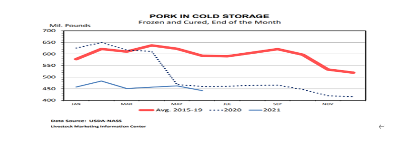 由于德爾塔變異病毒影響,市場整體低迷,消費(fèi)受限,豬肉庫存消耗緩慢,預(yù)計8月豬價持續(xù)低位徘徊。