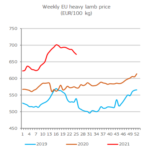 歐盟委員會(huì)預(yù)估,隨著歐洲國(guó)家餐飲服務(wù)機(jī)構(gòu)的逐步開(kāi)放,2021年牛肉進(jìn)口量預(yù)計(jì)將增長(zhǎng)8%。但今年年初牛肉進(jìn)口量同比下降,由于餐飲門(mén)店關(guān)閉和全球市場(chǎng)牛肉短缺導(dǎo)致歐盟需求下降,1-3月歐盟牛肉進(jìn)口量同比下降了13%。英國(guó)和巴西將出口轉(zhuǎn)向了亞洲市場(chǎng)。由于來(lái)自英國(guó)和新西蘭的發(fā)運(yùn)量減少,歐盟第一季度羊肉進(jìn)口量下降了21%。由于運(yùn)輸成本上漲和亞洲市場(chǎng)活躍,從新西蘭進(jìn)口量下降了23%,歐盟相對(duì)較高的價(jià)格應(yīng)該會(huì)給今年下半年的進(jìn)口增加一些空間,導(dǎo)致2021年進(jìn)口僅減少8%。