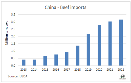 三月主要出口國對中國市場牛肉出口量超20萬噸