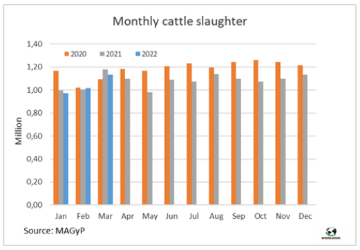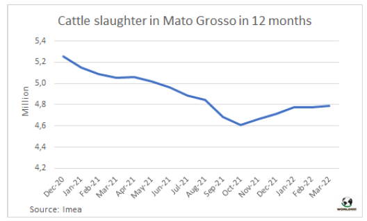 馬托格羅索州牛屠宰量在去年下半年達到最低點后持續(xù)增長,3月被送到屠宰場屠宰的牛數(shù)量達35.75萬頭,同比增長了3.2%。這是由于母牛屠宰量增長,母牛屠宰量達17.8萬頭,同比增長了10%,相反,公牛屠宰量縮減了2.7%,達17.9萬頭。