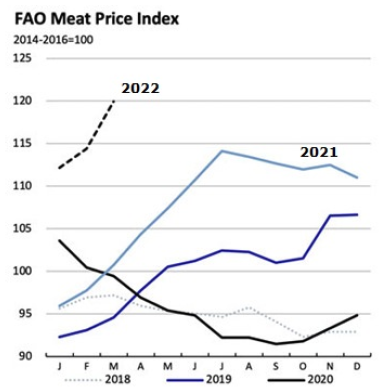 根據(jù)糧農(nóng)組織的數(shù)據(jù),三月肉類價格暴漲,創(chuàng)歷史新高