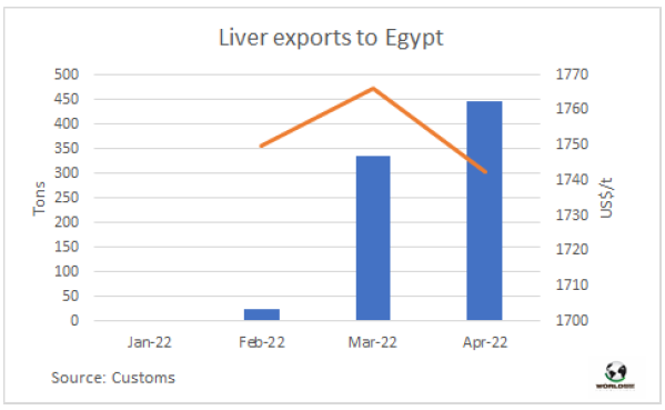 埃及取代了俄羅斯市場(chǎng)成為牛肝主要發(fā)船目的地