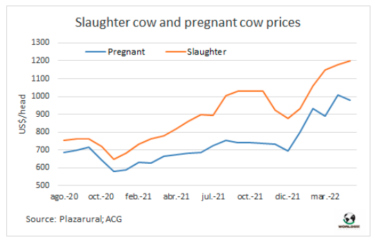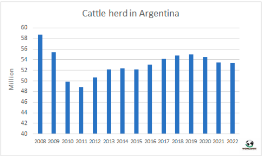 政府報(bào)告稱,截至2021年12月,活牛存欄量為53416435頭,比2020年底減少約10萬頭(減少0.2%)。這一數(shù)據(jù)被執(zhí)政黨解釋為“平衡局面”,因?yàn)樵谶^去的兩年里,存欄下降了 150萬頭,其中近90萬頭是母牛。