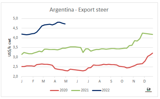 阿根廷牛肉出口協(xié)會(huì)昨日宣布,由于一些國際市場(chǎng)價(jià)格下跌,他們將不得不“重新分析海外銷售業(yè)務(wù),調(diào)整成本結(jié)構(gòu)”,以適應(yīng)新的出口形勢(shì)。他們說,希爾頓配額的價(jià)格從17900-18000美元/噸下降到現(xiàn)在的15000美元/噸。481配額產(chǎn)品價(jià)格從11000美元/噸下降至目前的9000美元/噸。由于新冠肺炎疫情、人民幣貶值、上海港口堵塞等原因,中國市場(chǎng)價(jià)格每噸下降了1000美元。