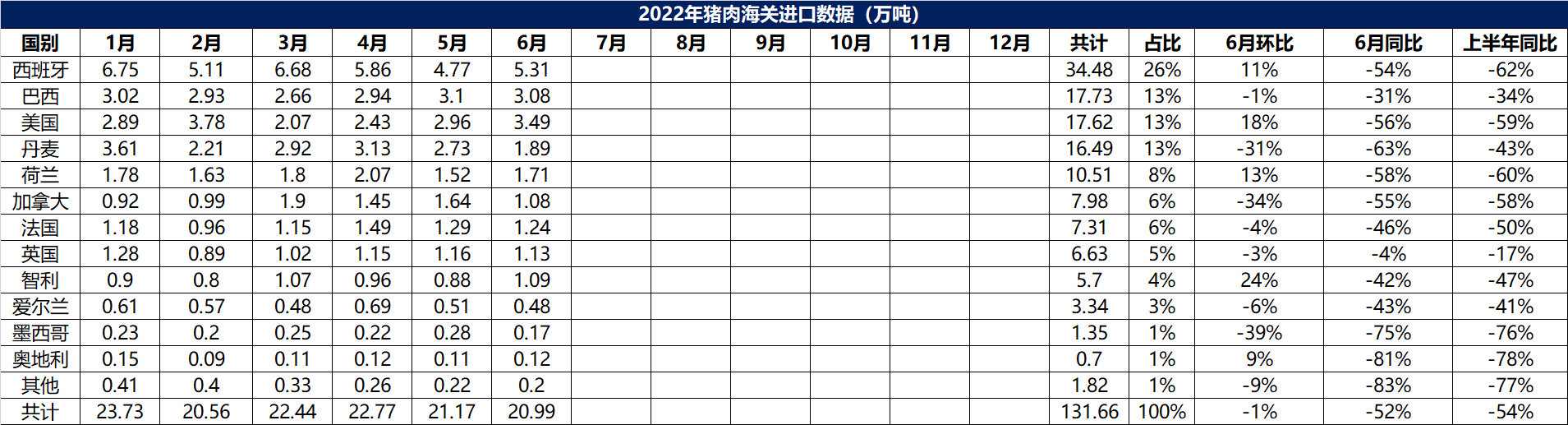 2022年1-6月冷凍豬肉進(jìn)口數(shù)據(jù)