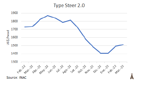 這些閹公牛的采購價格在3月上漲了60美元,達到了1170美元,因此兩者之間的差額(INAC稱之為工業(yè)附加值)減少了38美元,達到343美元每頭。
