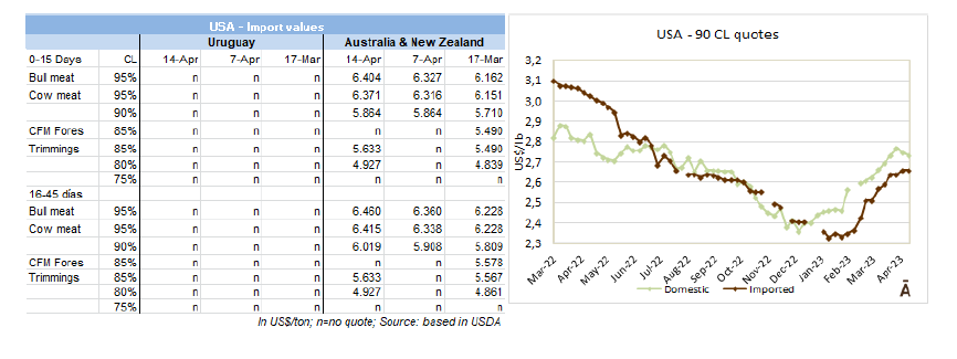 隨著美國牛和牛肉價格的堅挺,進口市場活躍。一家出口商用說美國從巴西進口90CL碎肉價格是$4300-$4400,95CL碎肉價格是$4500-$4600。