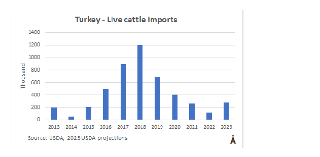 美國農(nóng)業(yè)部預測2023年土耳其牛進口量將增加一倍以上