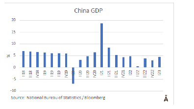 中國2023年第一季度的GDP增長率為4.5%,這是自去年第一季度以來的最高年增長率。這一增長率超過了分析師的預期(4%)。使得一些投行(興業(yè)銀行、花旗集團)將他們對中國經(jīng)濟擴張的預期提高到6%左右,比北京設定的5%增速更高。