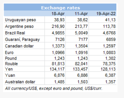 來自烏拉圭的一位出口商強調,目前美國的價格與他們今天在中國獲得的這種商品的價格“非常接近”。“在美國有與中國價格相似的替代板塊是一個很好的消息”他指出。