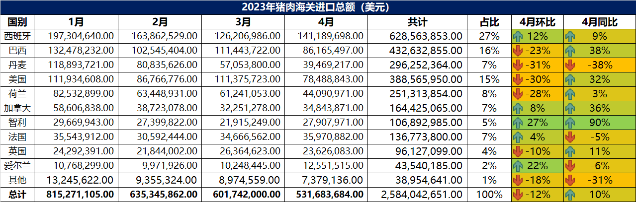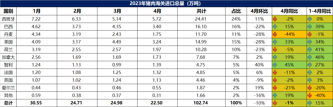 2023年4月冷凍豬肉進口數據