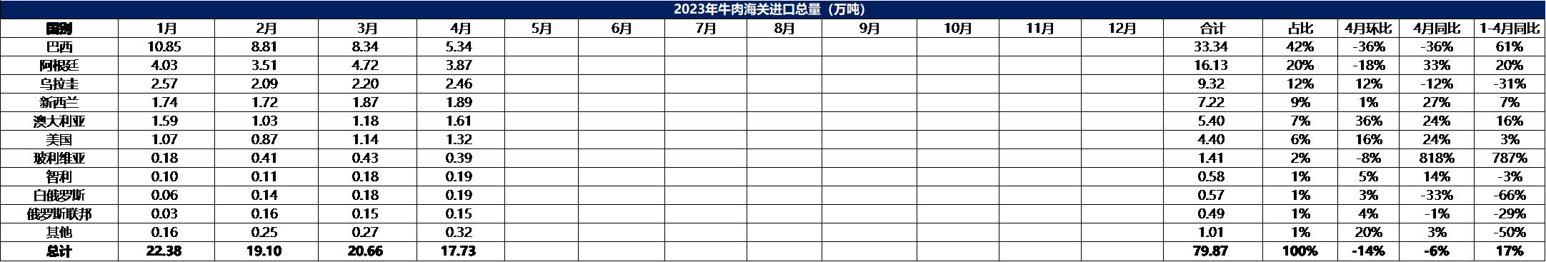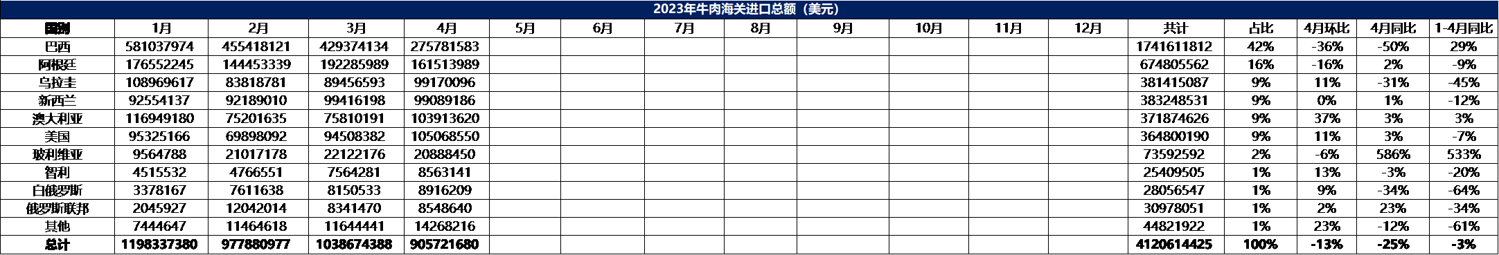 2023年4月冷凍牛肉進口數據