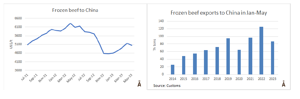 截至到今年5月,烏拉圭出口到中國(guó)的冷凍牛肉量下降36%
