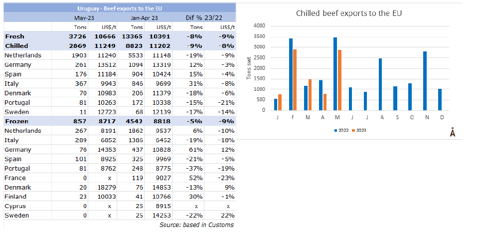 5月烏拉圭對(duì)歐盟的鮮牛肉出口量年降17%