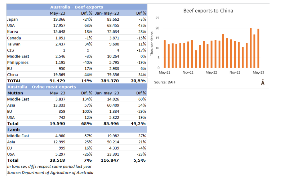 澳大利亞5月牛肉出口量激增