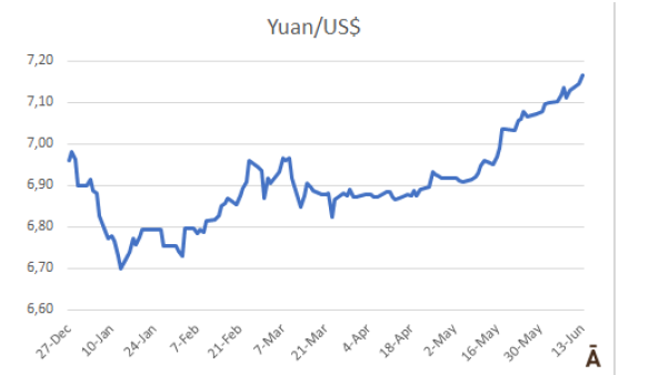 中國市場情況仍然不容樂觀。價格不知道何時會觸底,對于拐點何時到來仍有很大的不確定性。進口牛肉市場持續(xù)下調(diào)。另一個使市場情況變得復雜化的因素是人民幣的貶值。人民幣在上周貶值0.7%,在過去五個月累計貶值6.9%,使進口產(chǎn)品在成本更高。另一方面,央銀行宣布將短期利率從2.0%降至1.9%后,意味著政策性降息啟動,預計該趨勢將進一步加劇。