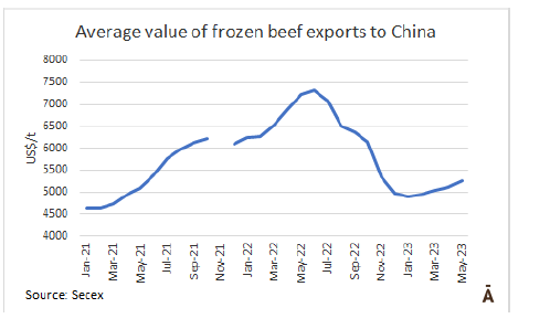 據(jù)估計,5月份約有24萬噸牛肉運往中國,這一數(shù)量將超過他們每月的需求量(估計為22.5-23萬噸)。自去年10月以來,出貨量一直低于需求量。
