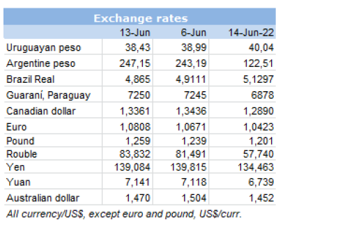 市場價格持續(xù)下跌。一位貿(mào)易商舉了一個例子,烏拉圭當時以$5500的CFR價格出售,兩天后每噸下降了$500,而本周的出價是$4800。在付款時要格外小心,因為進口商損失是巨大的,庫存的產(chǎn)品價值比目前的市場價要高得多。