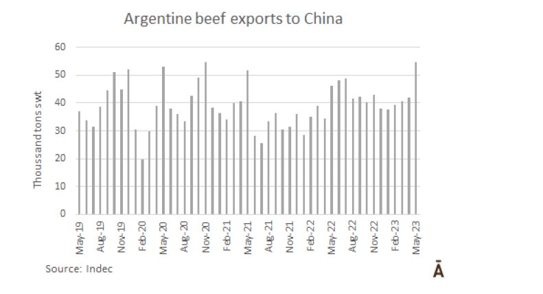 5月份,中國(guó)進(jìn)口了創(chuàng)紀(jì)錄的5.48萬(wàn)噸阿根廷牛肉,相當(dāng)于該國(guó)出口總量的84.3%。這些貨物包括1.23萬(wàn)噸帶骨牛肉,價(jià)值1980萬(wàn)美元,以及4.25萬(wàn)噸去骨牛肉,價(jià)值1.709億美元。