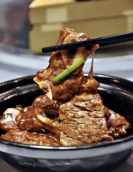 和牛排相比,牛仔骨更適合中國胃,運用中式技法烹飪牛仔骨也頗為驚艷。牛仔骨嫩而不韌,醬汁裹著略帶奶香的牛肉在口中縈繞,中餐特有的調味令牛仔骨入味香濃,這便是經典的黑椒牛仔骨的魅力。