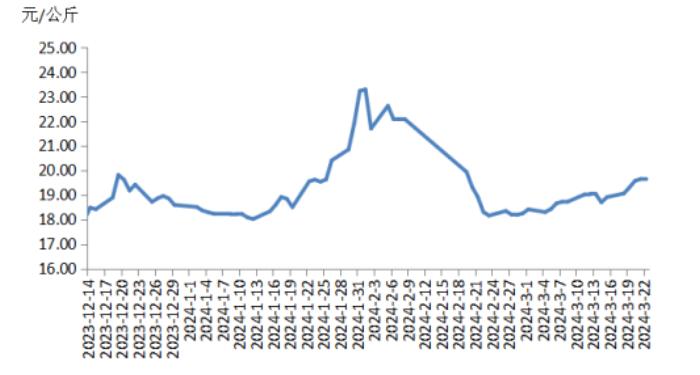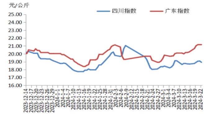 本周,四川豬肉周均價(jià)為每公斤18.96元,環(huán)比上漲1.3%,同比上漲2.2%,同比漲幅擴(kuò)大2.0個(gè)百分點(diǎn)。川內(nèi)散養(yǎng)戶(hù)出欄積極性不高,適重豬源減少;家庭消費(fèi)逐漸恢復(fù),豬肉經(jīng)銷(xiāo)商拿貨積極性提升,需求短時(shí)小幅增加。供減需增提振四川地區(qū)豬肉周均價(jià)環(huán)比小幅上漲。