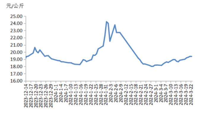 據(jù)農(nóng)業(yè)農(nóng)村部信息中心和山東卓創(chuàng)資訊股份有限公司聯(lián)合監(jiān)測(cè),2024年第12周(即2024年3月18日-3月22日,以下簡(jiǎn)稱(chēng)本周),16?。ㄖ陛犑校┦萑庑桶讞l豬肉出廠價(jià)格總指數(shù)的周平均值為每公斤19.55元,環(huán)比上漲2.0%,同比上漲1.3%,同比由跌轉(zhuǎn)漲。