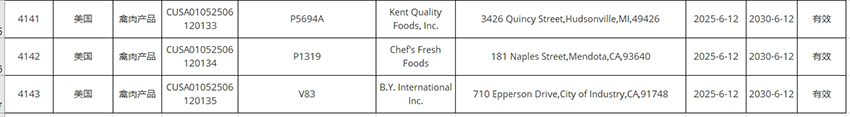 新增美國豬肉、禽肉企業(yè)自2025年6月12日及之后生產的符合中國要求的肉類產品輸華。其中83家禽肉企業(yè),23家豬肉企業(yè)。