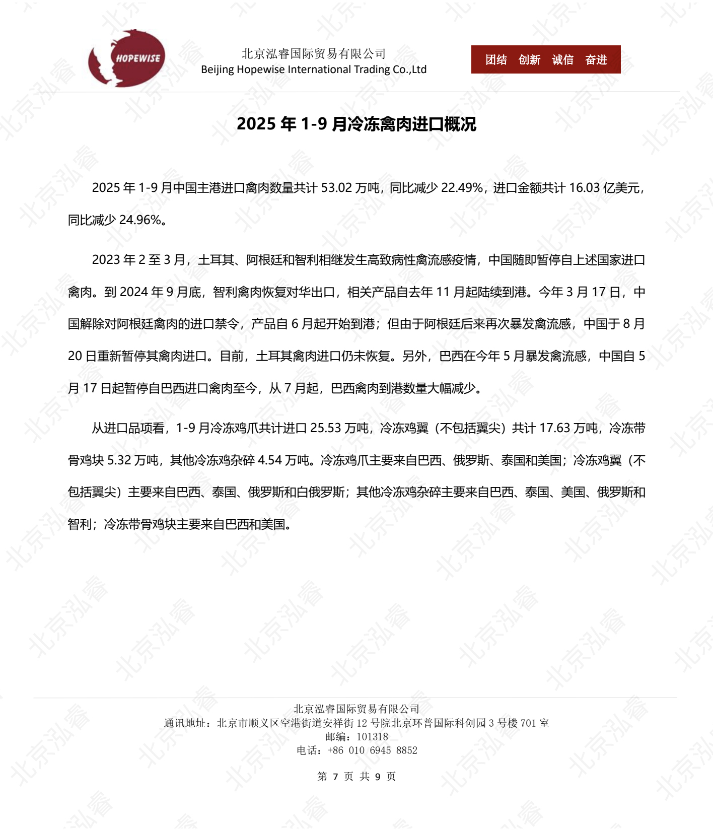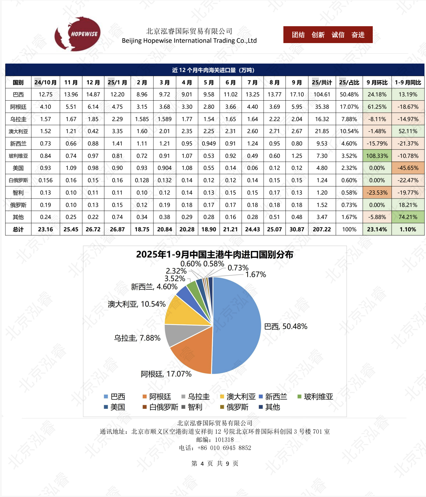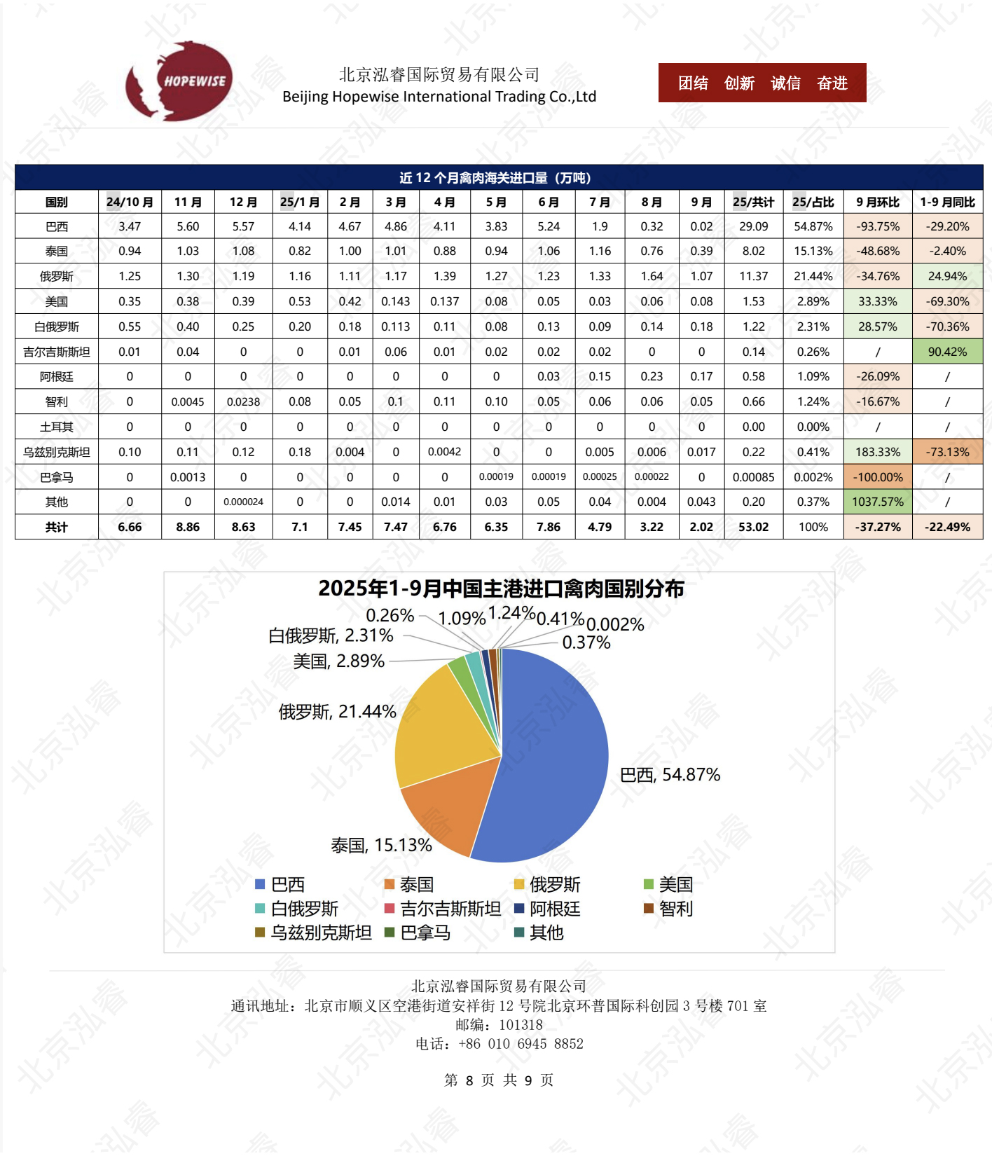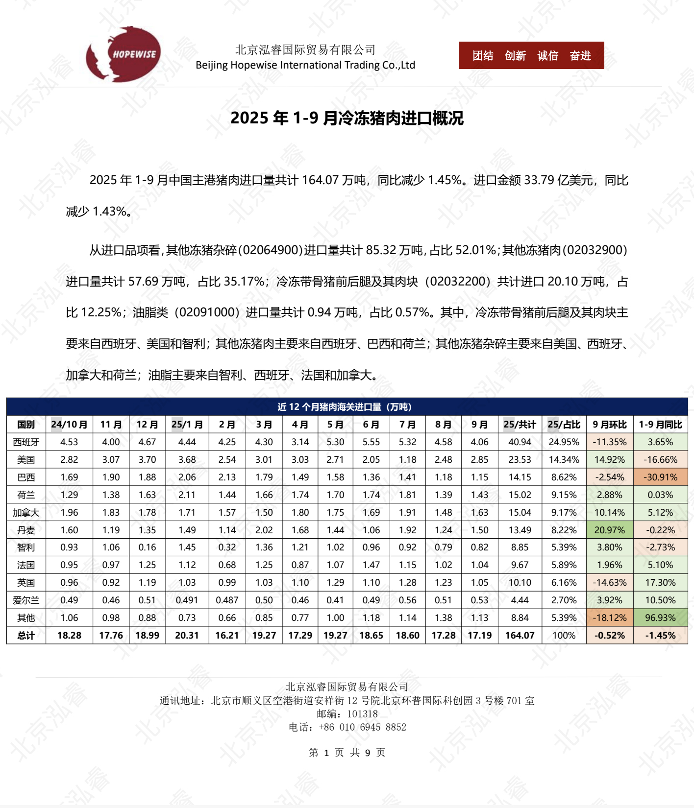 2025年1-9月冷凍豬牛禽肉海關進口數(shù)據(jù)