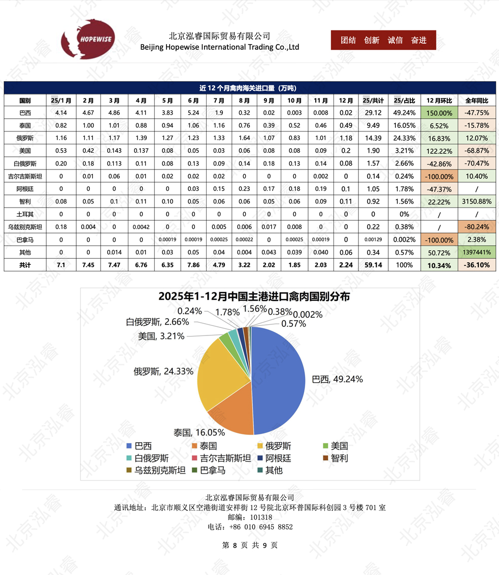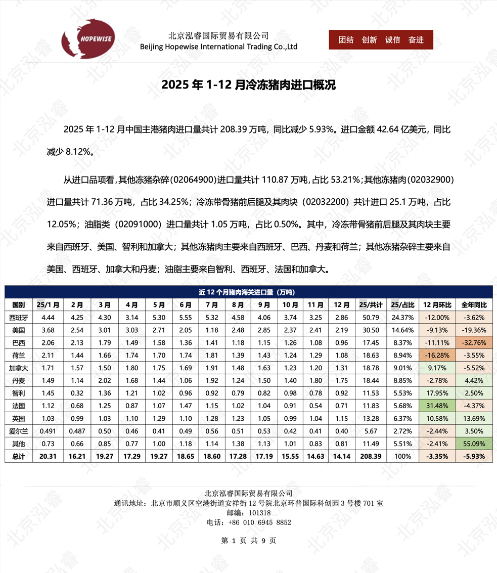 2025年1-12月冷凍豬牛禽海關(guān)進(jìn)口數(shù)據(jù)
