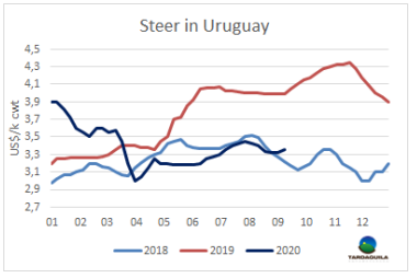 過去兩周,烏拉圭牛肉在美國市場(chǎng)的表現(xiàn)與預(yù)期脫軌。美國國內(nèi)牛肉產(chǎn)量旺盛,抑制了進(jìn)口業(yè)務(wù)的興趣,甚至連還價(jià)都沒有收到。此外,隨著氣溫的下降,美國餐飲的牛肉銷售開始放緩。