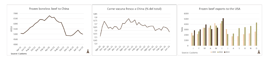 輸華總量為15,565噸,比5月份減少2380噸。中國(guó)是烏拉圭6月份出口牛肉的58%的出口國(guó),這是自2020年8月以來(lái)的最低比例。中國(guó)的進(jìn)口價(jià)格的急劇下降和其他國(guó)家的堅(jiān)挺,比如美國(guó),使其減少了主要客戶的優(yōu)勢(shì)。