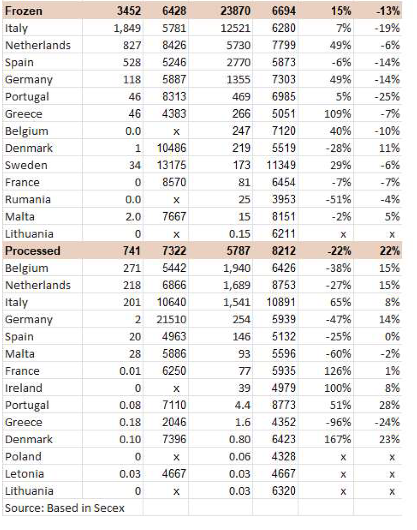 在WBR的最新報(bào)告中,公布了截至7月的月度出口表,其中新鮮牛肉的總出口存在錯(cuò)誤。下面是正確的圖表。