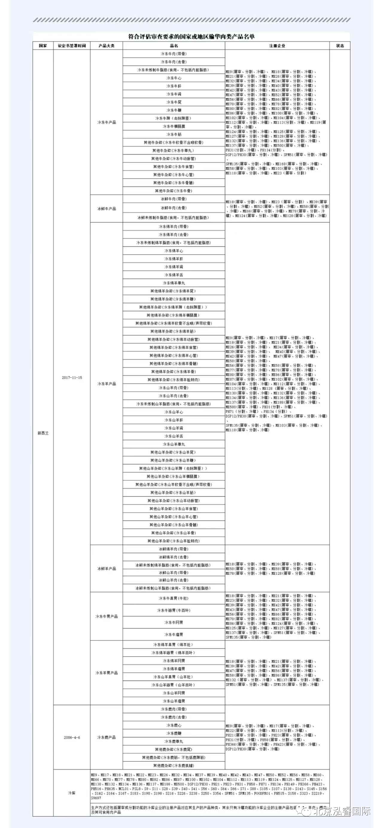 近日新增法國(guó)1家、新西蘭2家肉類企業(yè)