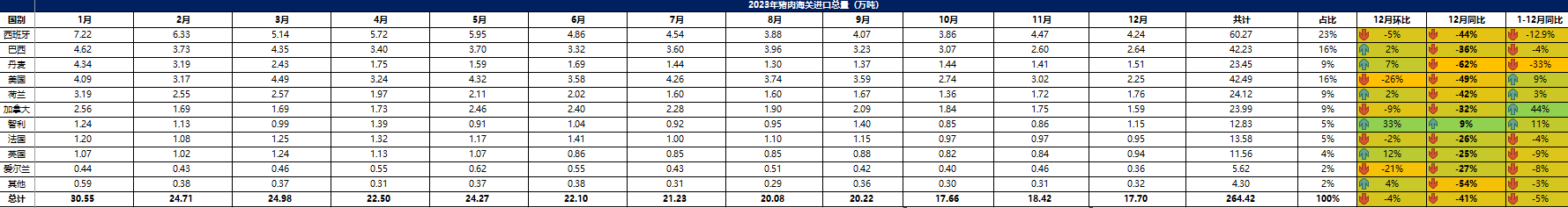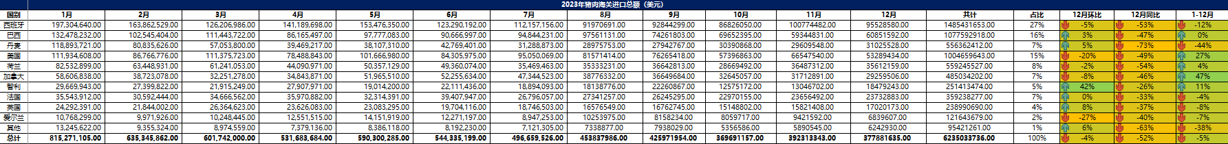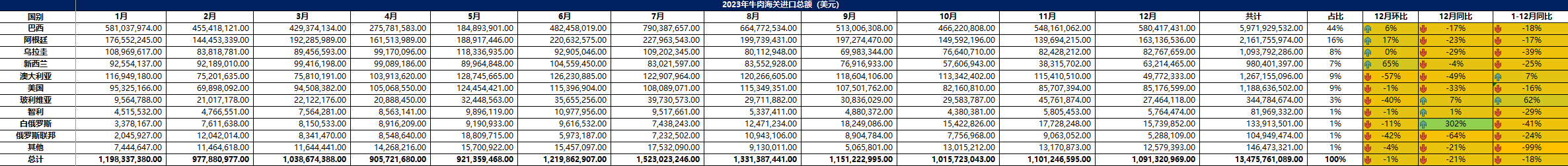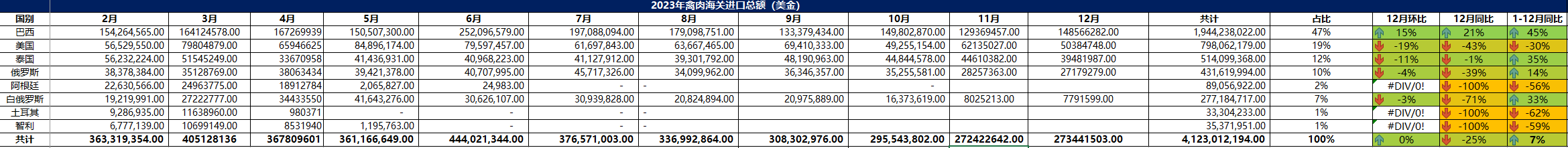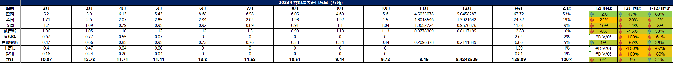 2023年12月冷凍豬牛禽肉海關進口數(shù)據(jù)