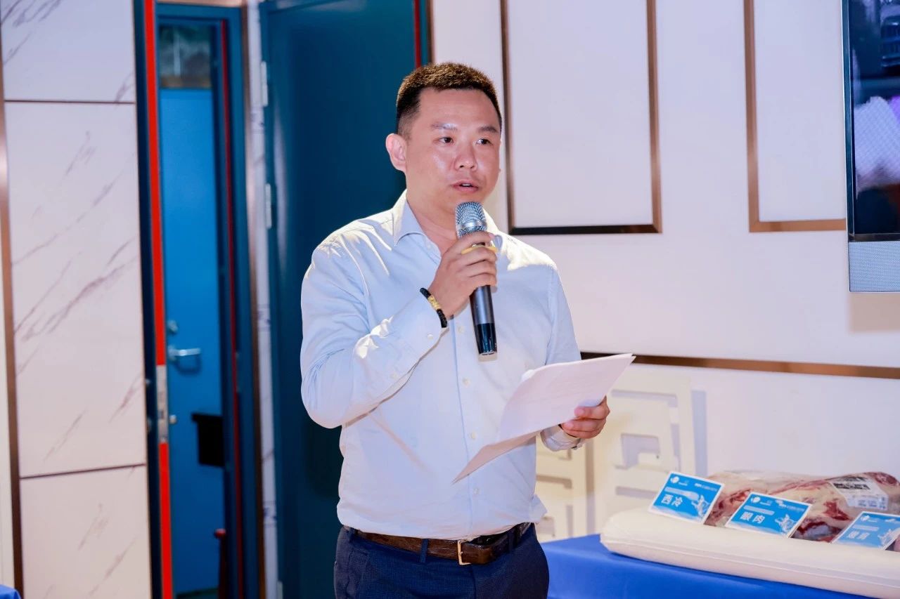活動開場,北京泓睿國際貿易有限公司總經(jīng)理楊勇先生向大家的到來表示歡迎,并介紹了中國肉類市場現(xiàn)狀。中國是牛肉產(chǎn)量和消費大國,且近年產(chǎn)銷量均有增加,2023年中國牛肉產(chǎn)量為750萬噸,消費量為1105.7萬噸,預計2024年中國牛肉進口量在265萬-270萬噸,其中主要為草飼牛肉。楊總介紹說:“我國牛肉消費特點突出,一是牛肉副產(chǎn)品需求量大,二是這兩年高端谷飼牛肉需求量增長。”