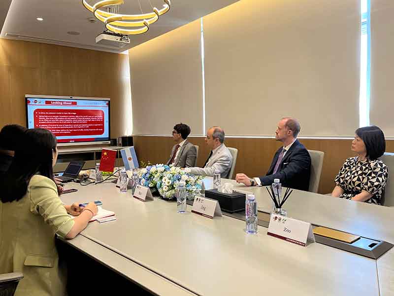 7月19日,阿根廷駐華大使H.E. Marcelo Suarez Salvia一行蒞臨北京泓睿辦公室參觀交流,北京泓睿董事長孫永利及采購部主管張衍彬代表公司熱情接待。