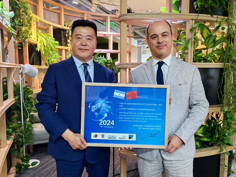 另外,阿根廷駐華大使對中國牛肉消費市場表示關切,就消費者是否知道我司牛肉產品的產地等問題進行詢問。大使就阿根廷乃至南美的農業(yè)市場情況與我司進行溝通,提出阿根廷的乳制品市場也有巨大的開發(fā)空間,孫總也積極表示愿意提供幫助。