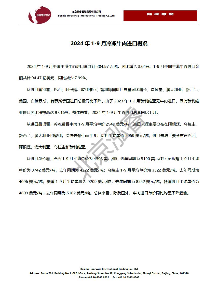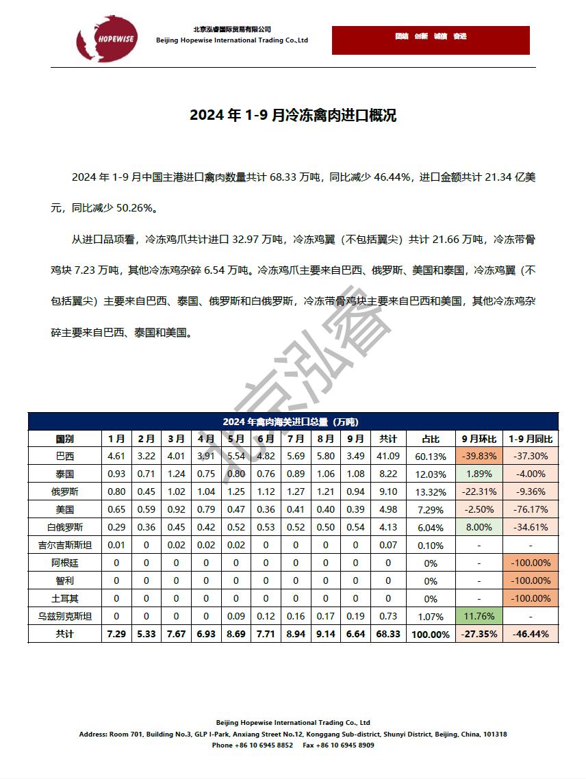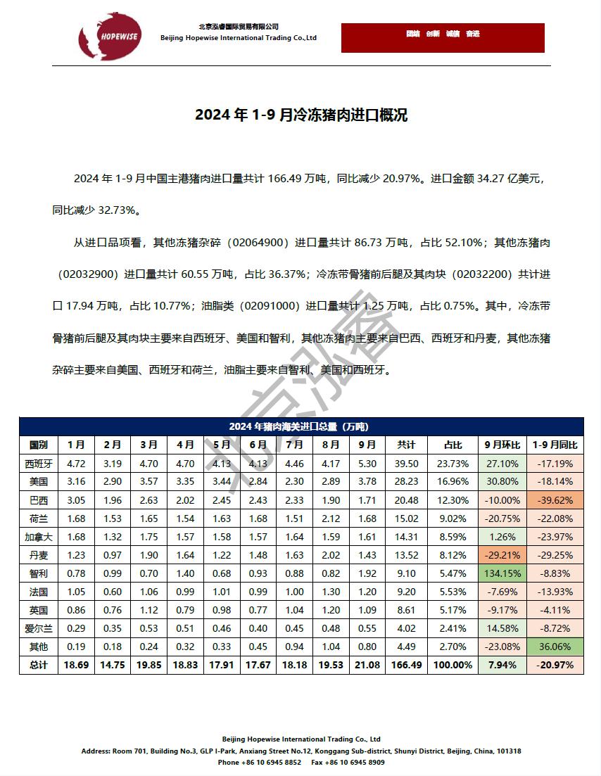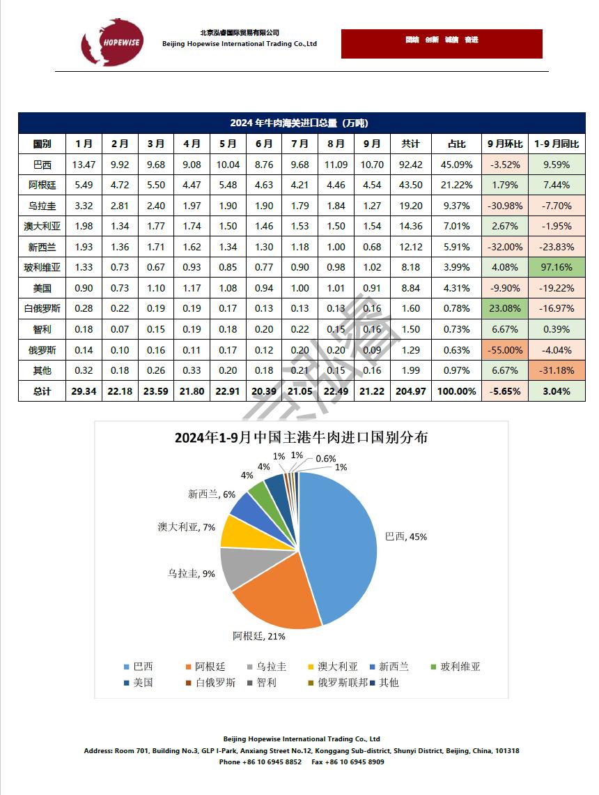 2024年1-9月冷凍豬牛禽肉海關(guān)進口數(shù)據(jù)