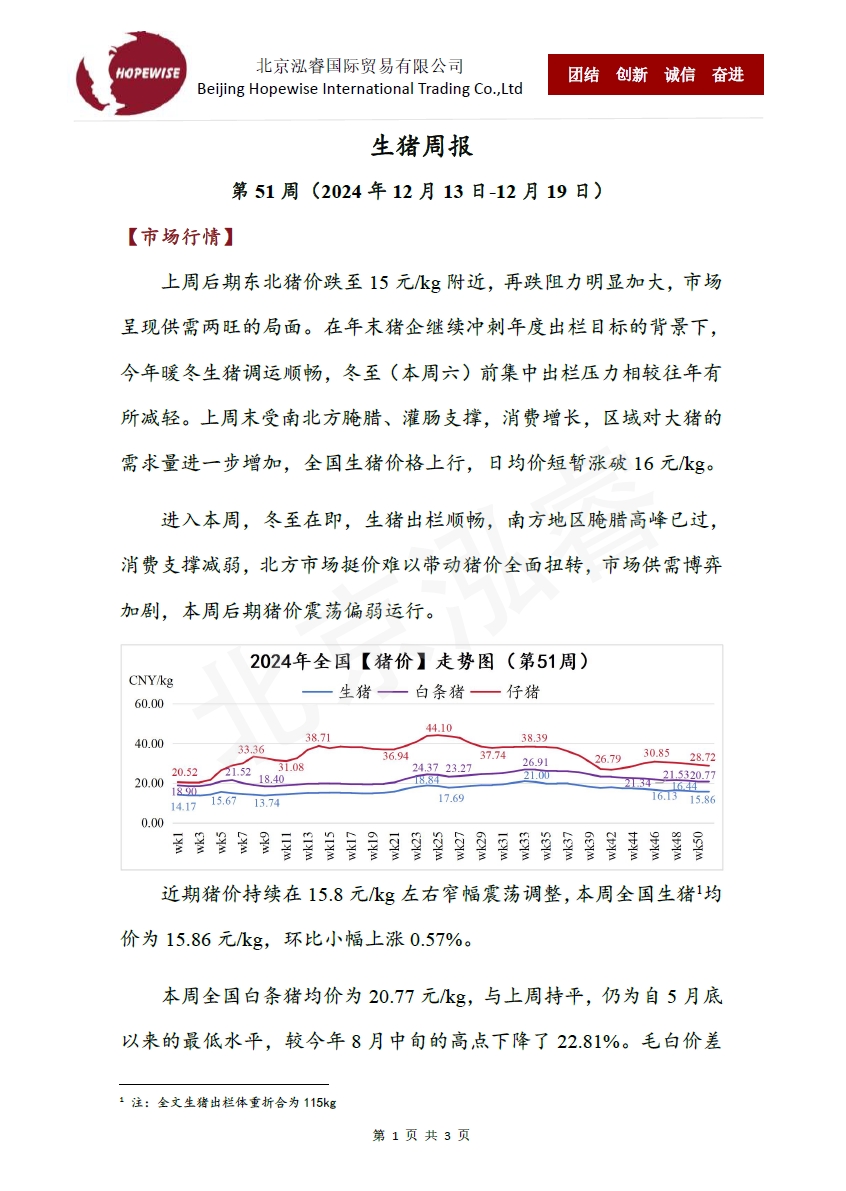 生豬周報第51 周(2024 年12月13 日-12 月19 日)