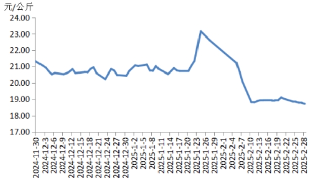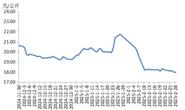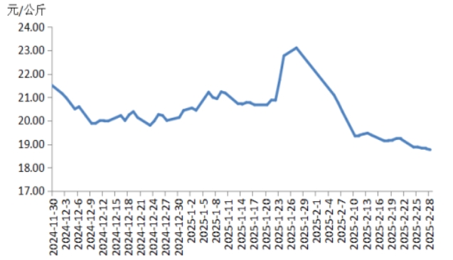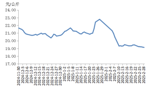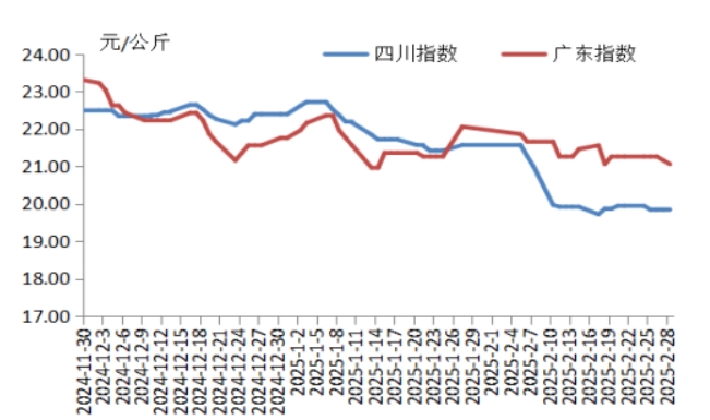 本周,廣東地區(qū)豬肉周均價(jià)為每公斤21.21元,環(huán)比下跌0.4%,同比上漲10.3%,較上周漲幅擴(kuò)大1.7個(gè)百分點(diǎn)。周前期,豬肉市場(chǎng)供需較為平穩(wěn),價(jià)格以穩(wěn)為主;周后期,受周邊市場(chǎng)生豬價(jià)格行情偏弱影響,本地區(qū)散養(yǎng)戶出欄積極提升,疊加豬肉消費(fèi)疲軟,經(jīng)銷商多壓價(jià)收購,帶動(dòng)豬肉價(jià)格微跌。