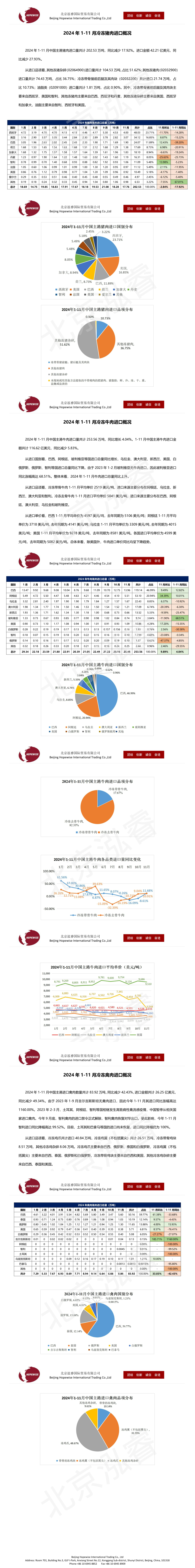 2024年1-11月冷凍豬牛禽肉海關(guān)進(jìn)口數(shù)據(jù)