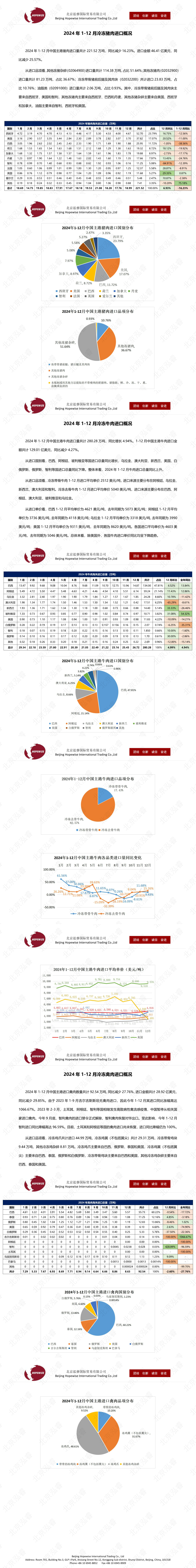 2024年1-12月冷凍豬牛禽肉海關(guān)進(jìn)口數(shù)據(jù)
